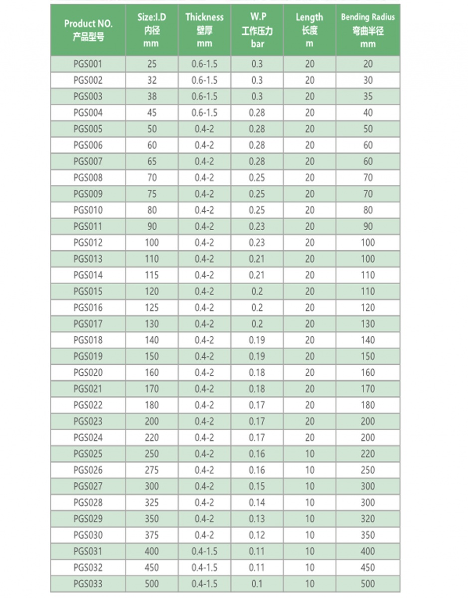 - Structure: Polyurethane covered, spiral copper-plated steel wire and uneven inner wall of the hose