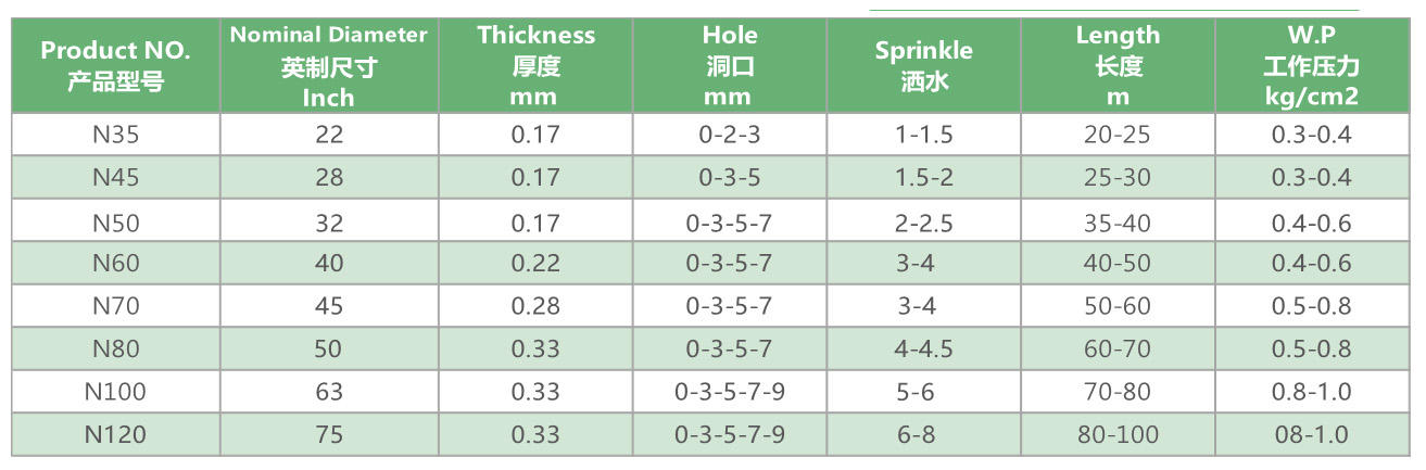 - 適用場所:塑料棚、露夭田地、沙質土壤、坡地等