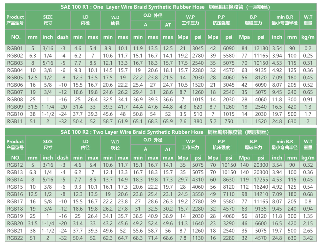 - 由耐油合成像膠內管、一/兩條高強度紡織纖維編織加固線和耐油耐候合成橡膠外層組成